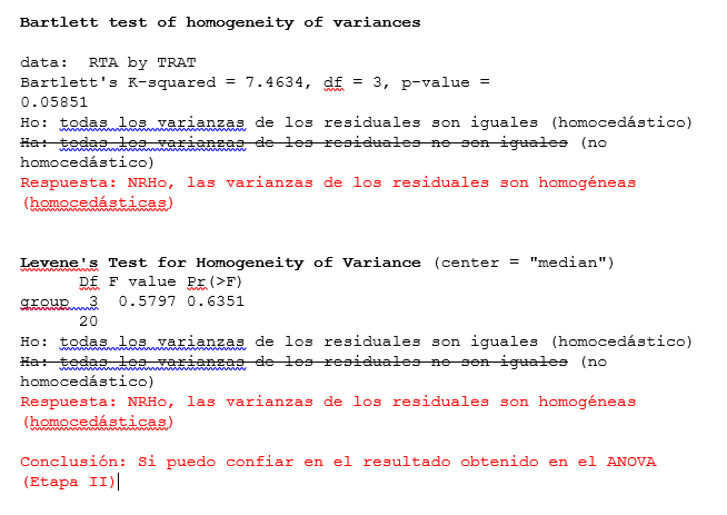 leveneTest(RTA~TRAT, data=datos, center = "median")